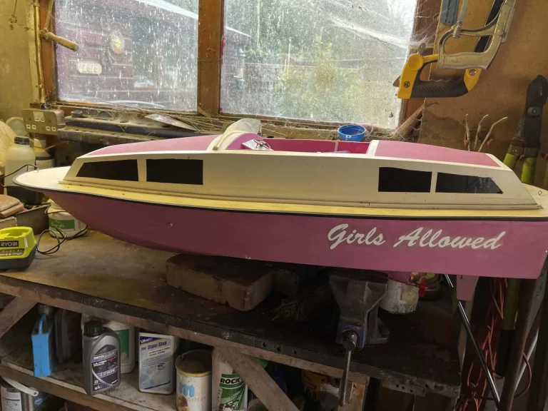 Large Fibreglass hull 48"x15" with brushless motor and racing type prop, rudder servo. Needs some Tlc and radio/esc etcRef CB1 £20 ono